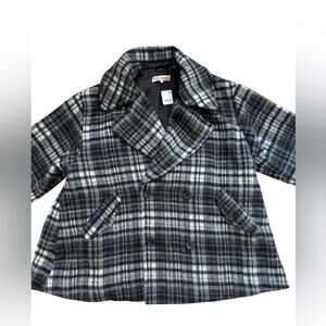 Designed to add shape and dimension to absolutely any style, this so cool peacoat is featured in a slouchy, relaxed fit and stunning wool fabrication with perfect plaid print for an added timeless touch.