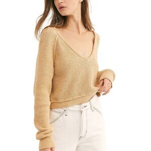 Free People High-low V-neck Sweater In Camel Women's Size Large