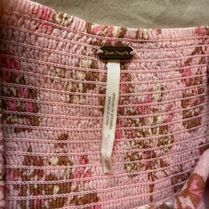 Free People Hilary floral pink Printed Top Pink Combo Boho crew summer /XS