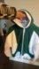 Color Combo: Green, White, sleeves are very light pink/lavendar (hard to tell from photo). Great color combo