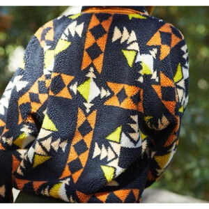 Free People Hit The Slopes Printed Fleece Jacket Onyx Black Rust Yellow XL NWT