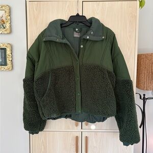 Free People Hit the Slopes Sherpa in dark green, size small.