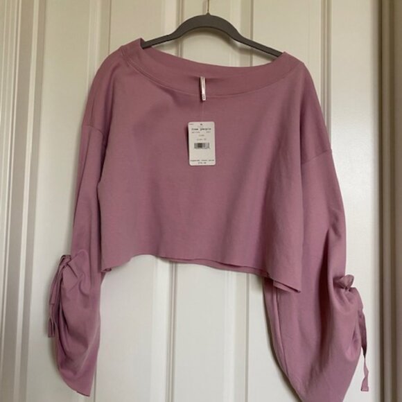 Free People Holala Statement Sleeve Crop Sweatshirt Rose XS