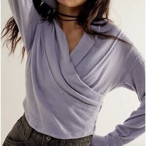 Free People Hold Me Close Wrap Top Long Sleeve Ribbed Balletcore Pilates XS NWT.