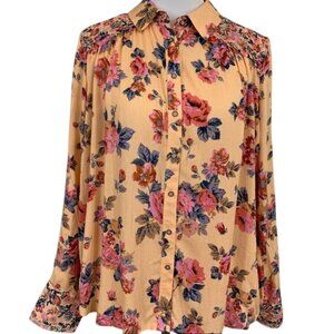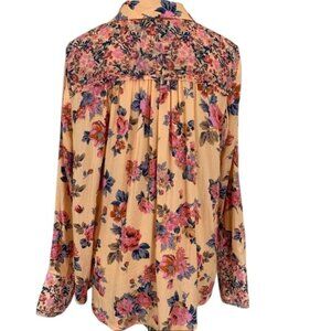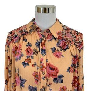 Free People hold on to me coral floral long sleeve button down top. Good condition. NO TRADES.