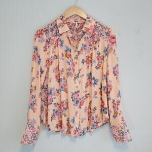 Free People Hold On To Me Printed Top in Coral Sz S Floral Boho Peasant