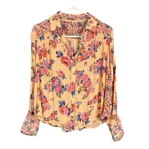 Free People Hold On To Me Printed Top in Coral Women's Small