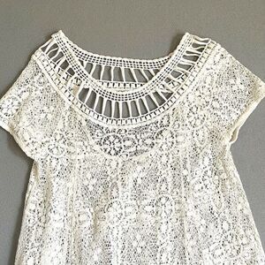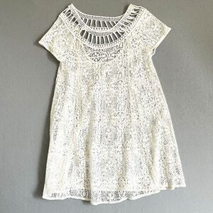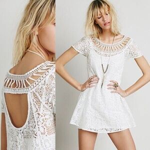 Free People Holy Mountain White Mini Floral Crochet Dress Womens M Short Sleeves Summer