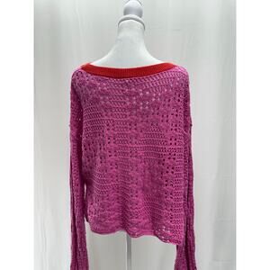 Pink Knit sweater with Red trim