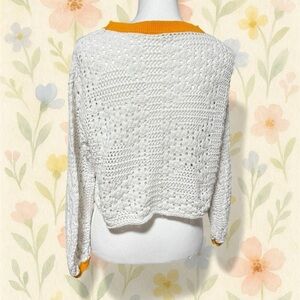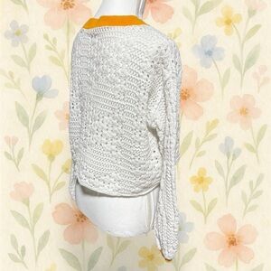 free people home run sweater, free people sweater xs, white knit sweater, mustard trim sweater, chunky knit, cropped sweater, boho sweater, indie knit, textured pullover, cozy fall sweater, balloon sleeve sweater, slouchy knit, depop style, cottagecore knit, y2k cozy aesthetic, neutral knit, minimalist boho outfit, layering knit top