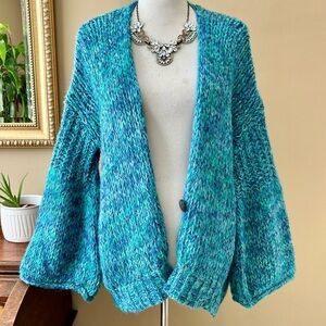 Free People Home Town Cardi Cardigan Sweater Arctic Turquoise Blue Alpaca Size S