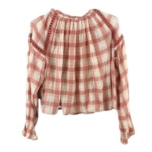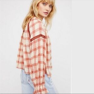 Free People Honey Grove Plaid Peasant Blouse Boho