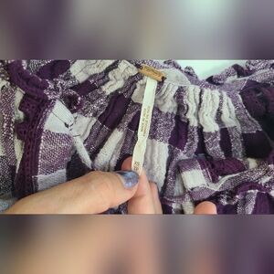 Free People Honey Grove Purple Plum Plaid Boho Tassels Women's Top