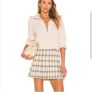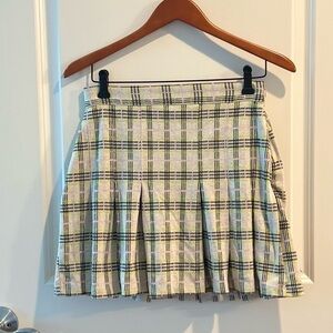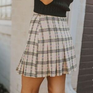 Perfect in plaid, this timeless mini skirt is featured in a classic high-rise silhouette with defined pleating at bottom for added shape and dimension. Side zipper.