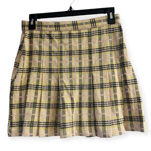 Perfect in plaid, this timeless mini skirt is featured in a classic high-rise silhouette with defined pleating at bottom for added shape and dimension.