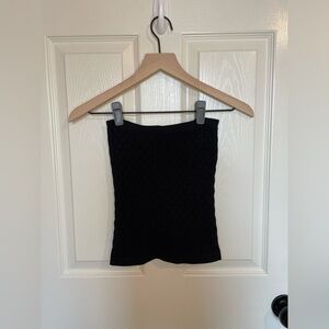 Textured, lacy cutout detail, full length tube top, black basic, closet staple, built in bra
