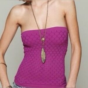 The Free People Honey Black Textured Tube Top is as sweet as honey! Super stretchy knit shapes this semi-sheer tube top with diamond pattern cutouts throughout. Built-in shelf bra and a figure-flaunting fit!