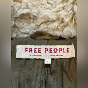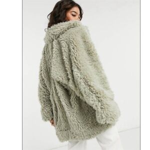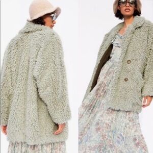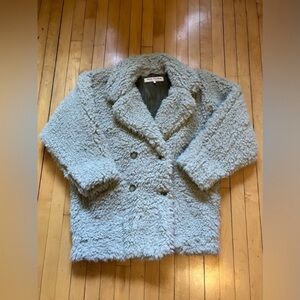 Size small very oversized teddy faux fur notched Peacoat from Free People. Honey pie style in sage, the color is somewhere between gray and green with the lining giving off olive green vibes. Very cute piece for layering, couldn’t find an accurate color stock picture so provided different colors for fit. Check out the pictures for measurements, VERY oversized.