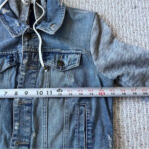Free People Hooded Denim Distressed Jacket with Removable Hood