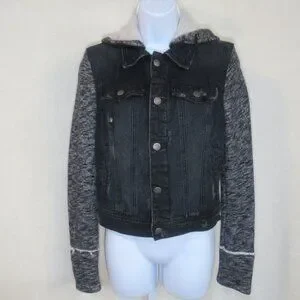 ✨Color/Pattern: Dark wash denim with gray heathered knit sleeves