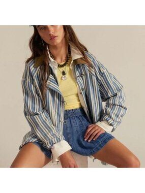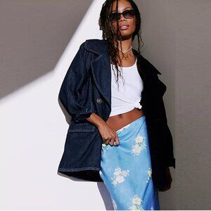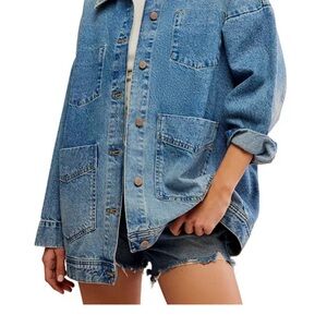 This effortlessly cool Free People denim jacket blends classic structure with cozy, lived-in charm. Crafted from sturdy cotton denim with soft knit sleeves and a removable hood, it gives you that perfect layered look without the bulk. The slightly distressed finish adds just the right amount of edge, while the tailored silhouette keeps it flattering and versatile. A true grab-and-go favorite that feels both relaxed and intentional.