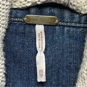 Free People Hooded Denim Jacket Size XS Cotton Distressed Removable Hood