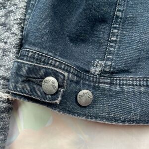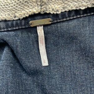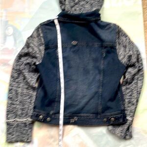 Free People Hooded Denim Knit Jacket Navy Black Gary Distressed L Mixed Media