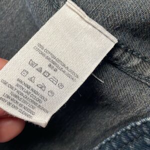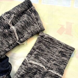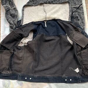 Great Condition Free People Hooded Denim Knit Jacket in Navy Black Gray Distressed Size Large