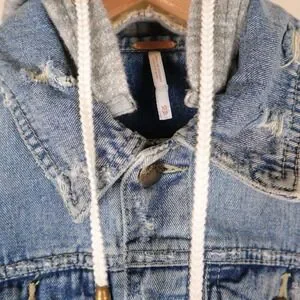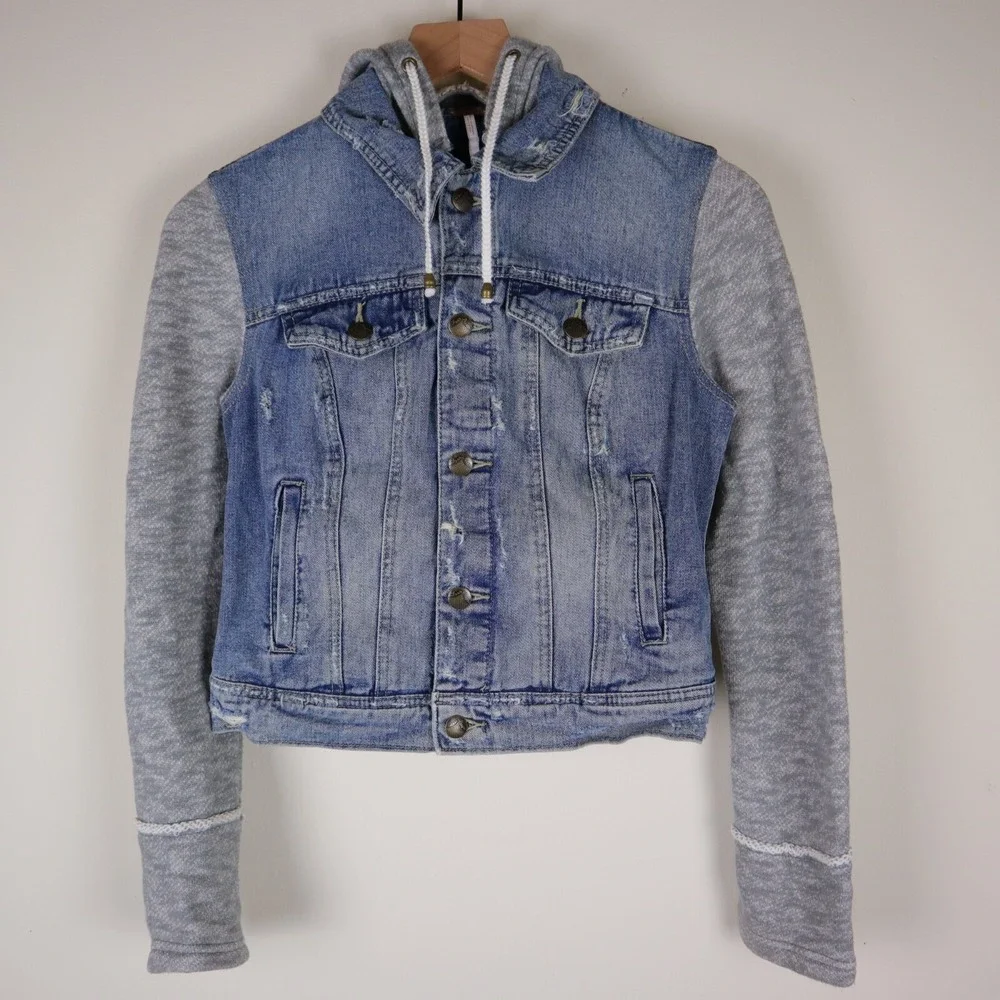 Free People Hooded Denim Sweatshirt Hybrid Jacket Women's XS 16x18