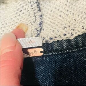 This Knit Hooded Denim Jacket by Free People in size large blends classic denim with cozy knit details. It features a soft heathered knit hood and sleeves paired with a lightly distressed denim body for that signature laid-back Free People look. Button front closure, front chest pockets, and casual fading give it an effortlessly lived-in vibe. Comfortable, easy to layer, and perfect for year-round wear. Excellent preowned condition with minor distressing consistent with style.