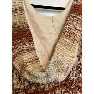 Free People Hooded Knit Sweater Womens L Multicolor Boho Textured Mixed Design