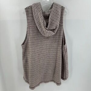 Stylish hooded sweater with a sleeveless design. Features subtle purple and brown stripes. Ideal for casual wear.