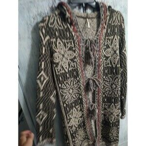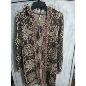 Free People Hooded Tassel Cardigan Boho Hippie Cottage Core Small