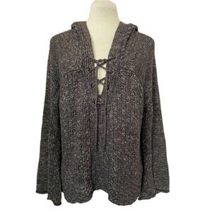 Free People Sweater: Cute oversized pullover hoody sweater features a lace front.