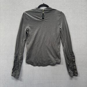 Free People Hooked On You Mock Neck Long Sleeve Top Womens XS Grey Boho Witchy