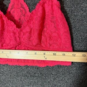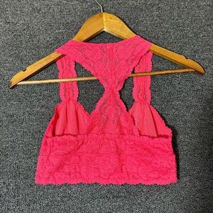 Elegant pink lace bralette with floral patterns. Ideal for stylish layering.