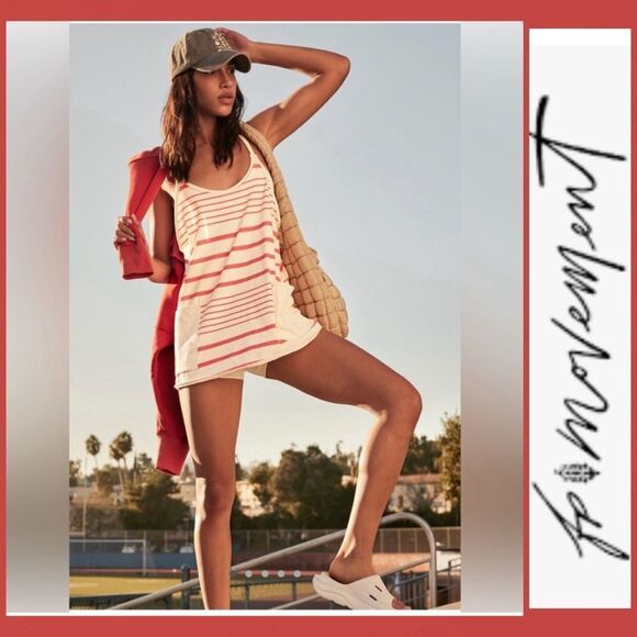 Free People Hot Shot Mini Printed Dress XL red ivory spring stripe NWT