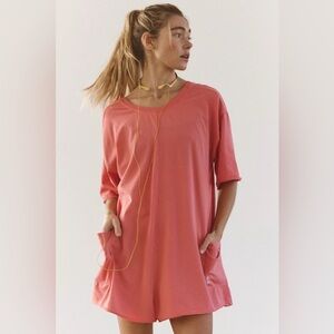 Free People Hot Shot Tee Romper One Piece in Electric Rose Sz Large
