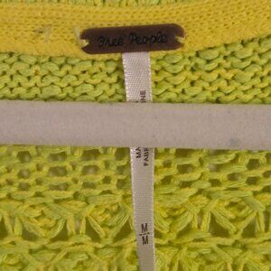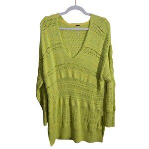 Free People Hot Tropics V-neck Open Knit Tunic Sweater Limelight Combo Size M