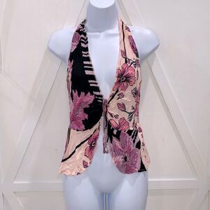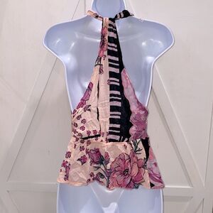 Free People Hot Tropics Tank in Dark Combo Halter Top Pink Purple Black Size M
