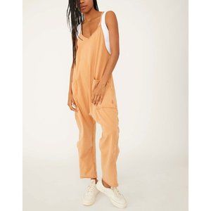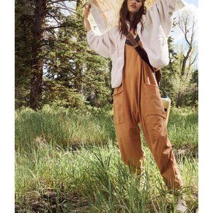 Stylish tan jumpsuit. Relaxed fit with pockets. Perfect for casual outings.