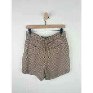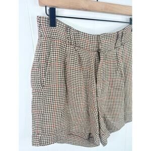 Free People Houndstooth Linen High Rise Shorts Size 2 Tan Brown