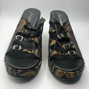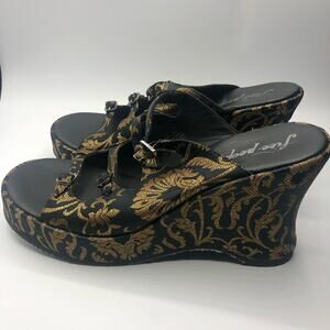 Free People Huffman Platform Wedge Sandal Black Gold Brocade Buckles EU 41 /US 11