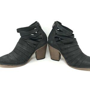 Free People Hybrid Womens Ankle Boots Booties Black Leather Heels Strappy EU 38 US 8