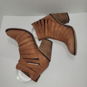 Free People Hybrid Boot Strappy Tan Leather Block Heel Ankle Women's 6 Western Style No. 29317195