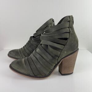 Free People Hybrid Gray Green Leather Strappy Ankle Boots Wood Heel 38 7.5/8
