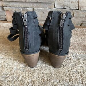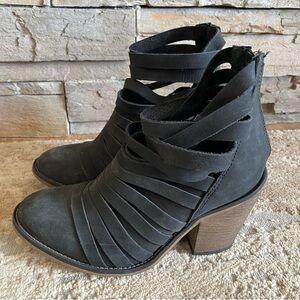 Free People Boots Hybrid Strappy Nubuck Leather Ankle Booties Heeled Black: 36