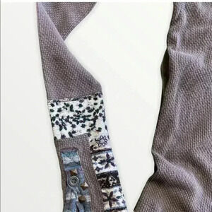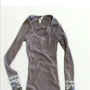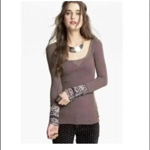 Free People Hyperactive Hippie Cuff Studded Buttons Thermal Top Brown XS