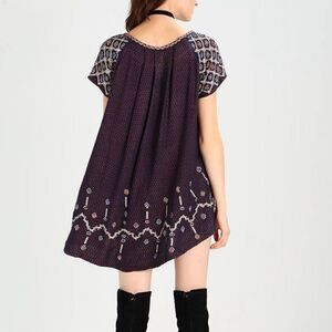 Free People IN THE CLOUDS Dark Knit Embroidered Sweater Tunic / Mini Dress