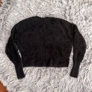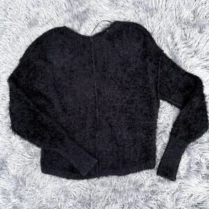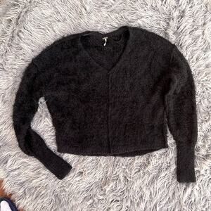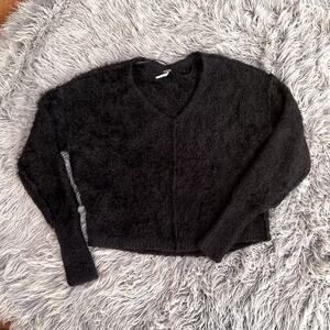 Free People Icing V-Neck Pullover Sweater Oversized Fuzzy Black Womens XS
